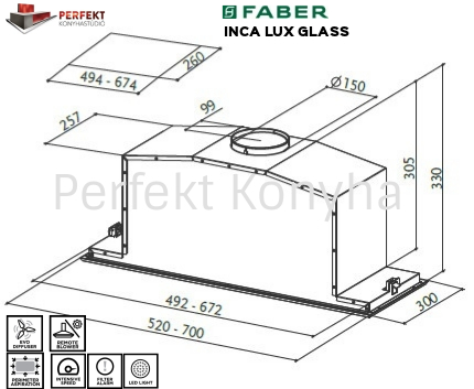 FABER Inca Lux Glass EV8 X/BK A70 inox/fekete üveg páraelszívó 5 év magyar garanciával