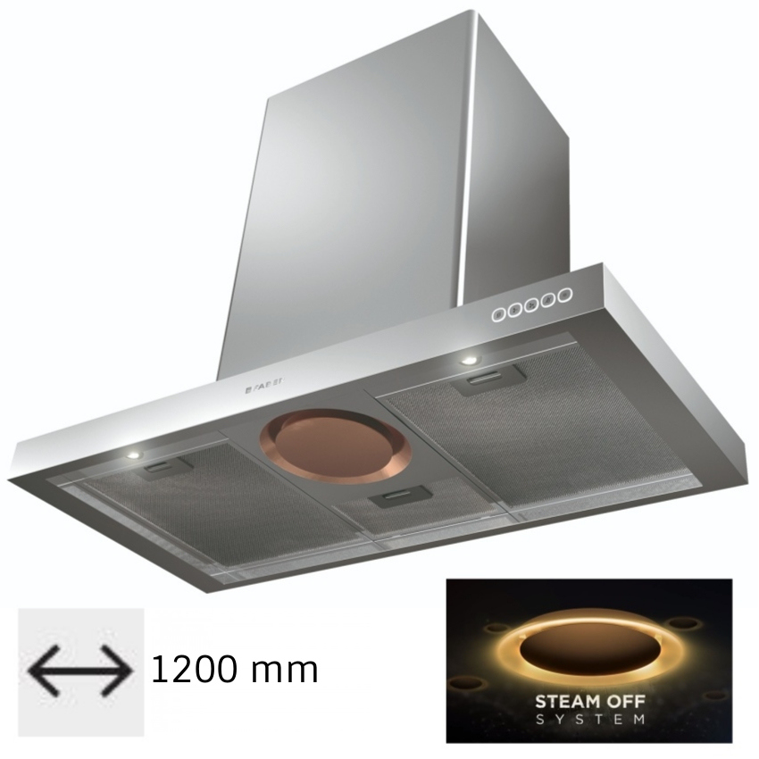 STEAM OFF SYSTEM technológia - teljesen kizárja a páraelszívó alatti és körüli páralecsapódást. Változó geometriájú, ellenőrzött légsugarak két örvényt keltenek, amelyek irányítják a füst és a pára bejutását.