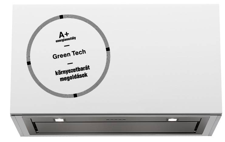 A környezetbarát Green Tech technológia új hatékonysági szintet és energiatakarékos eredményeket biztosít. A Falmec A+ kollekciójának kulcspontja egy alacsony fogyasztású szénkefe nélküli Green.Tech motor. Ennek a motornak köszönhetően a termékek teljesítménye még jobban megnőtt, míg a fogyasztásuk kisebb lett. A 800 m3/h elszívásra képes Green.Tech motorok olyan elektronikus vezérlést alkalmaznak, amely mindegyik fokozatban maximalizálja a motor teljesítményét. Ezenkívül a rotorra szerelt állandó mágnesek használata lehetővé teszi, hogy a páraelszívó drasztikusan csökkentse az energiafogyasztását. A hagyományos motorokhoz képest az energiafogyasztás 60%-ra csökken maximális elszívási sebesség mellett. A csökkenés akár 90%-ot is elérhet, ha a páraelszívót az első sebességi fokozaton használják.
