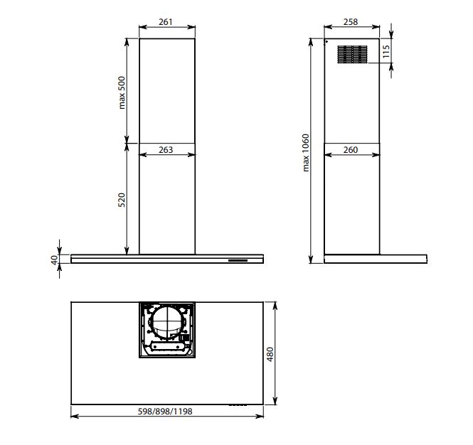 SIRIUS – (SEM12) konyhabútor lábazatba építhető külső motor - az elszívó motor (ventilátor egység) nem magában a páraelszívóban kerül elhelyezésre, hanem egy külső egységben. Ebben az esetben a motort a konyhabútor lábazatába kell telepíteni, így szinte szabadon marad a felette lévő szekrény.
