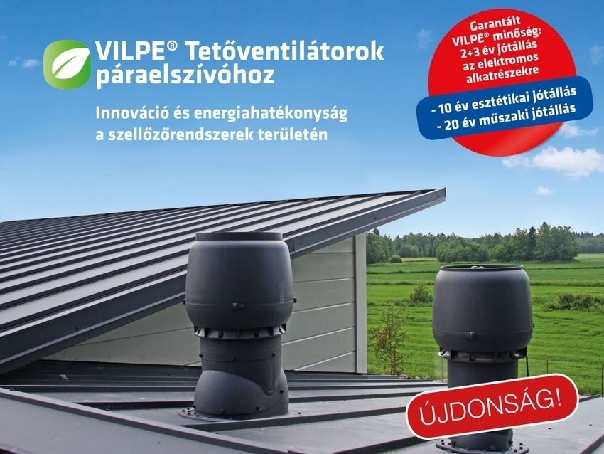 Külön megvásárolható ferde vagy lapostetőn elhelyezhető külső motor (VILPE® tetőventilátor) is az extra csendes megoldásért: