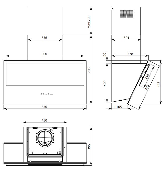 Vertikális (függőlegesen döntött) fali páraelszívó