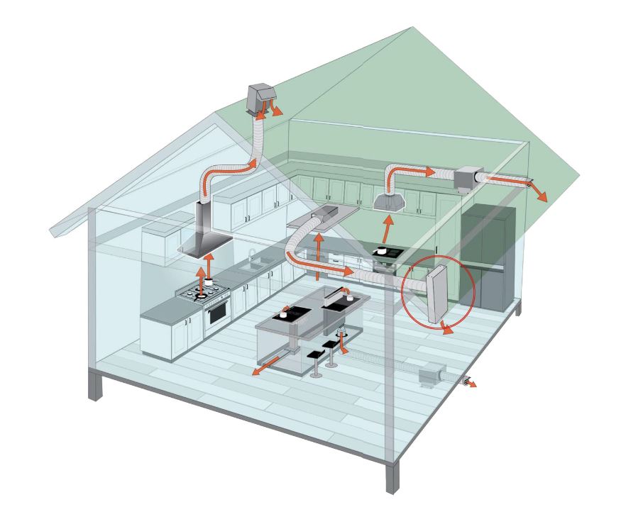 - kivezetett üzemmód esetén légbevezető elem – a konyhai páraelszívók hatékony működésének elengedhetetlen feltétele, az elszívott levegő mennyiségének megfelelő friss levegő pótlása. A légbevezető elem által biztosított friss levegő mennyisége a konyhai páraelszívó teljesítményétől függ, alacsonyabb fokozaton kevesebb levegő mennyiséget enged be, magasabb fokozaton arányosan több levegőt. Ennek köszönhetően mindig az elszívásnak megfelelő levegő mennyiség áramlik be a helyiségbe.