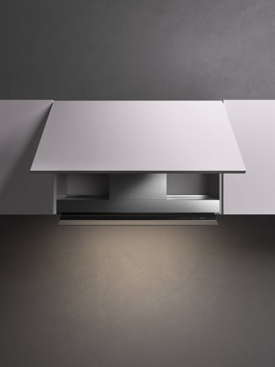 - az érintővezérlés a kihajtható üveg légterelőn elhelyezve, így az ajtó kinyitása nélkül is elérhetők a páraelszívó funkciói.