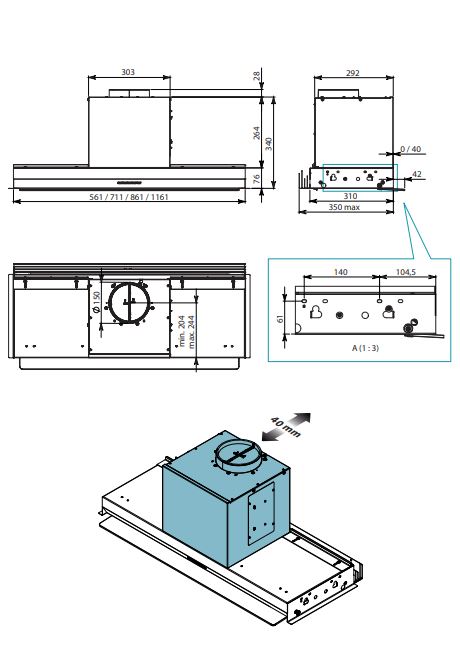 SIRIUS – (SEM12) konyhabútor lábazatba építhető külső motor - az elszívó motor (ventilátor egység) nem magában a páraelszívóban kerül elhelyezésre, hanem egy külső egységben. Ebben az esetben a motort a konyhabútor lábazatába kell telepíteni, így szinte szabadon marad a felette lévő szekrény.