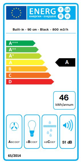 Falmec Virgola NRS Touch 90 fekete felső szekrénybe építhető páraelszívó