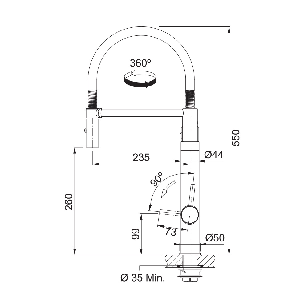 Könnyen felszerelhető, mint bármely szokásos csaptelep, nincs szükség értékes szekrényre a mosogató alatt.