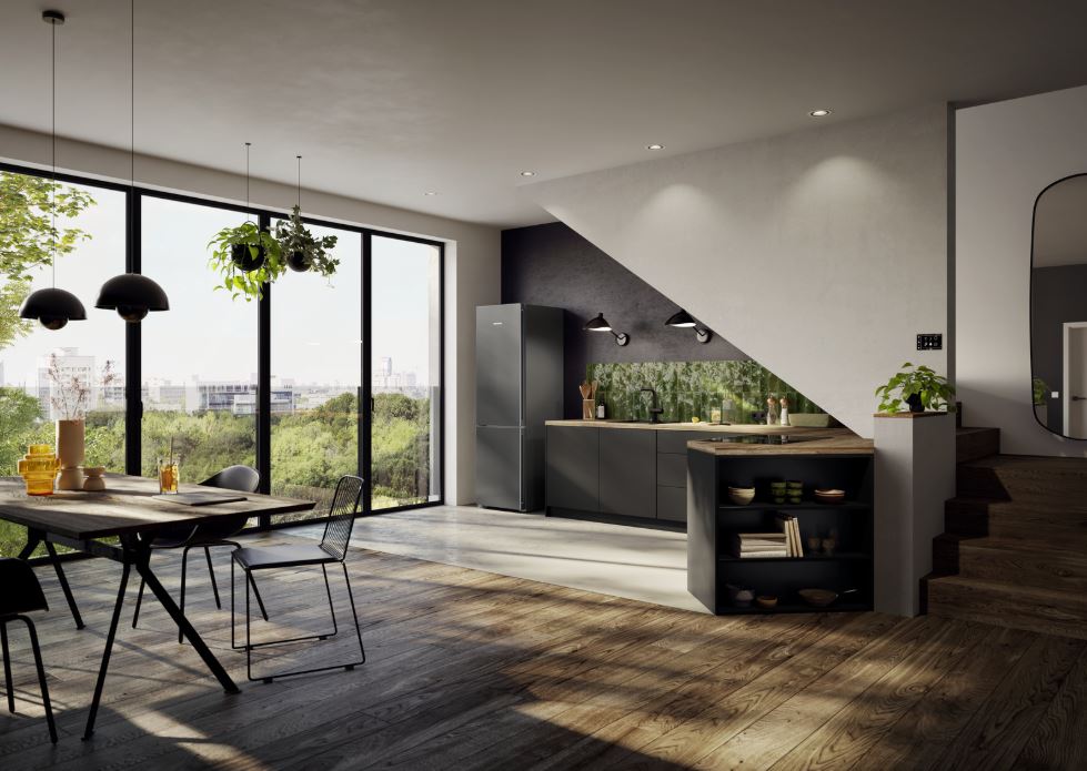 - InteriorFit – a hűtő pontosan kitölti a 60 cm mélységű szabad helyet. Csak az ajtó emelkedik ki határozottan és biztosítja az optimális hozzáférést a süllyesztett- vagy az emelőfogantyúhoz.
