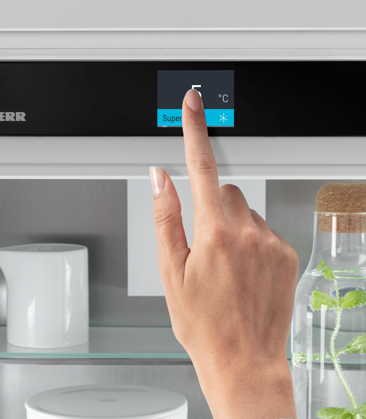- BottleTimer - ez a funkció a SuperFrost aktiválásával extra gyors hűtésről gondoskodik. Mihelyt a fagyasztóba helyezett üveg eléri az optimális hőmérsékletet, a Liebherr készülék az alkalmazáson keresztül emlékeztet, hogy ki kell venni az üveget.