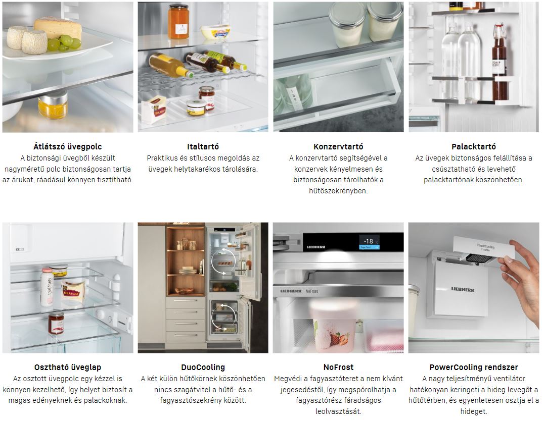A Liebherr NoFrost funkciója automatikusan leolvasztja a fagyasztót. Amint jégréteg jelenik meg a párologtatón, egy érzékelő beindítja a leolvasztási folyamatot. Lekapcsol a ventilátor, a párologtató vezetékei felmelegszenek és a jég anélkül elolvad, hogy a fagyasztótérben megemelkedne a hőmérséklet. A Liebherr NoFrost készülékei ezzel a professzionális hűtőtechnológiával gondoskodnak arról, hogy az élelmiszerek hosszan megőrizzék frissességüket. Az élelmiszert lehűtött, keringetett levegő fagyasztja meg, közben kiszorítva minden esetleges párát. Így a fagyasztó mindig jégmentes marad, leolvasztással sem kell bajlódni, az energiafogyasztásuk változatlan és nem deresednek be az élelmiszerek sem.