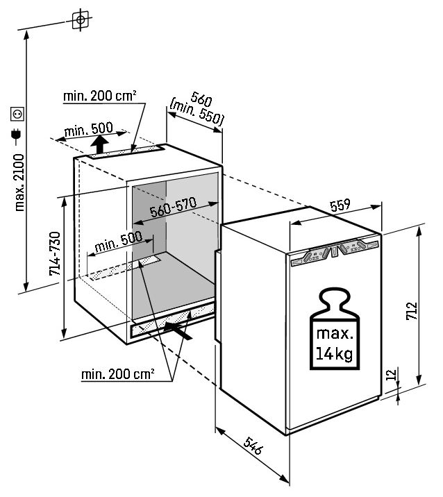 - Side-by-Side koncepció – a fűtött tető lehetővé teszi a készülék fölé tetszőleges beépítési magasságú készülék elhelyezését