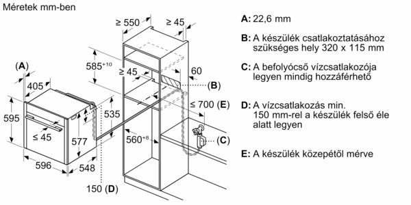 • Beépítési méretigény (ma x szé x mé): 585 mm - 595 mm x 560 mm - 568 mm x 550 mm