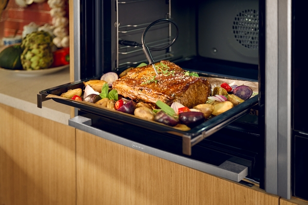 - Multipoint Meatprobe maghőmérő: a sütő belsejében lévő három mérőpont felügyeli a sütési folyamatot és kikapcsolja a sütőt, ha az étel kellően átsült, és még azt is jelzi, amikor elkészül. Csak hozzá kell adni a Home Connect fiókhoz a sütőt és kiválasztani a Meatprobe Assistant menüpontot.