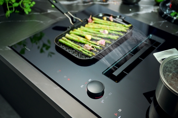 Az indukciós főzőlap a beépített elszívással két készüléket egyesít, hogy kényelmesebb legyen a főzés.