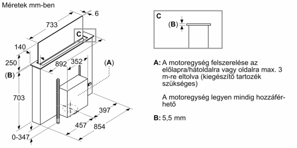 • Beépítési méretek (Magasság x Szélesség x Mélység): 703 x 854 x 123 mm