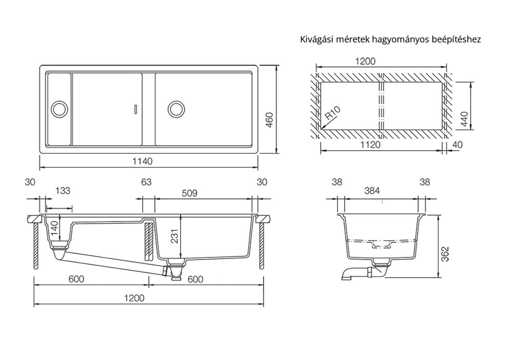 - Beépítése különösen gyors és egyszerű, hiszen a mosogatót egyszerűen csak az előre elkészített kivágásba kell felülről behelyezni, majd rögzíteni.