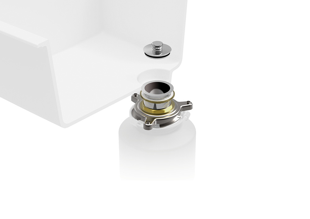 Az átalakító lehetővé teszi a szél nélküli, innovatív Perfect Drain lefolyórendszerrel rendelkező mosogatók konyhamalachoz történő csatlakoztatását.