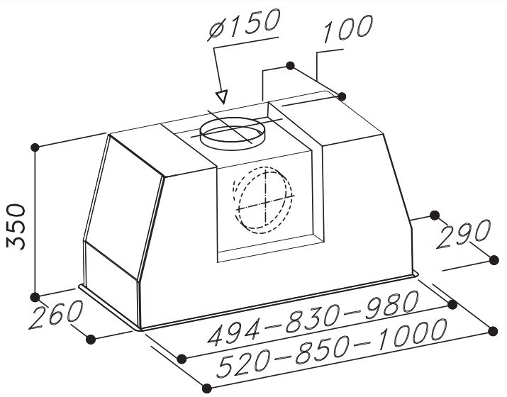 • kivezetett üzemmód esetén Bekötő-szett – ebben az üzemmódban az elszívott levegő – a zsírszűrő filteren áthaladva – egy csőrendszeren keresztül a szabadba vagy erre a célra kialakított légtechnikai kürtőbe kerül. Fontos, hogy ennél a változatnál biztosítsuk a megfelelő friss levegő beáramlását is, mert csak így működnek megfelelő hatékonysággal a készülékek.
