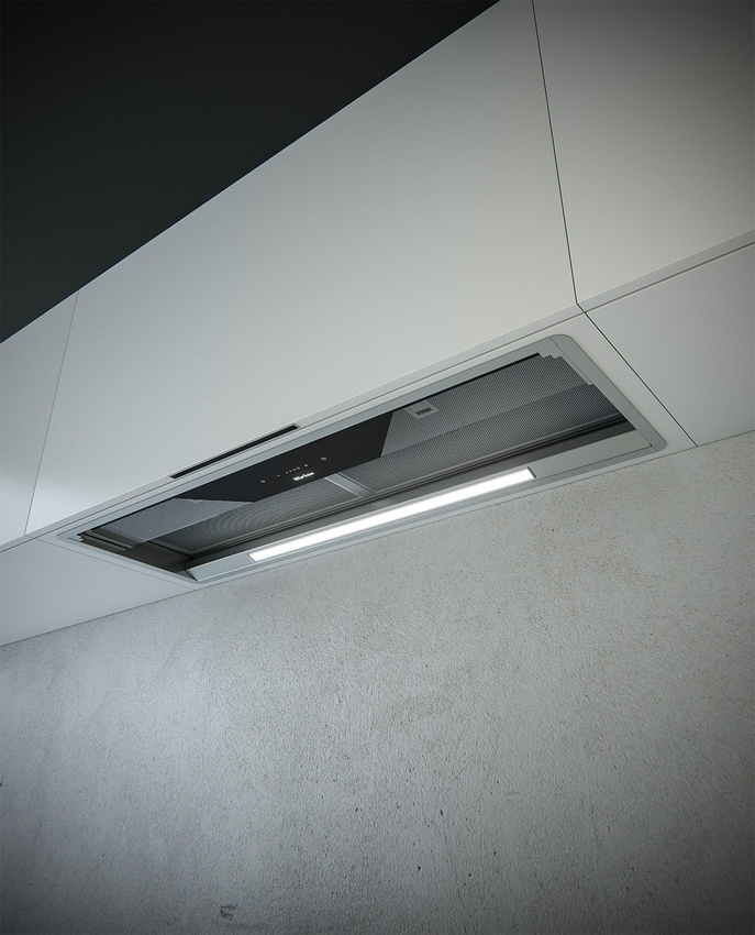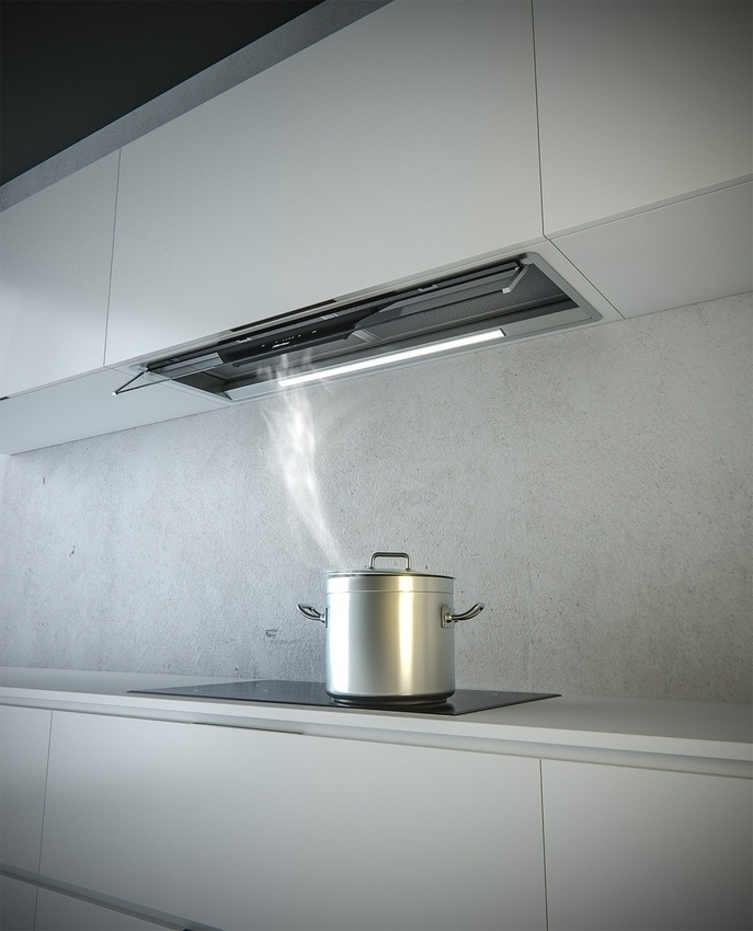 Felső szekrénybe építhető modell, amely a kihajtható üveglapon található érintővezérlés segítségével aktiválható. A kihajtható hőálló üveglap segít a főzés során keletkező pára és gőz elvezetésében, ami megnöveli az elszívó hatásfokát. A főzés befejezése után az üveglap visszahajtható az elszívó alsó részére.