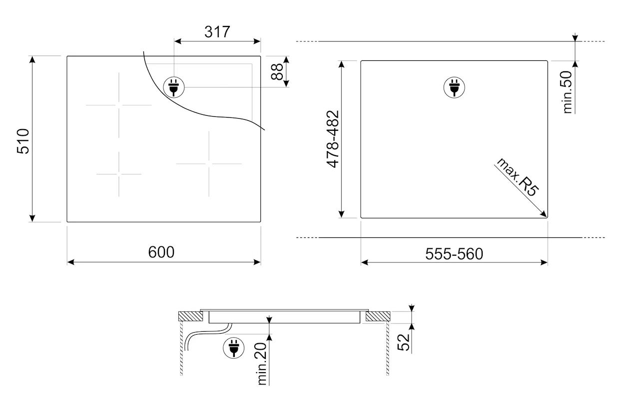 • Szélesség: 600 mm