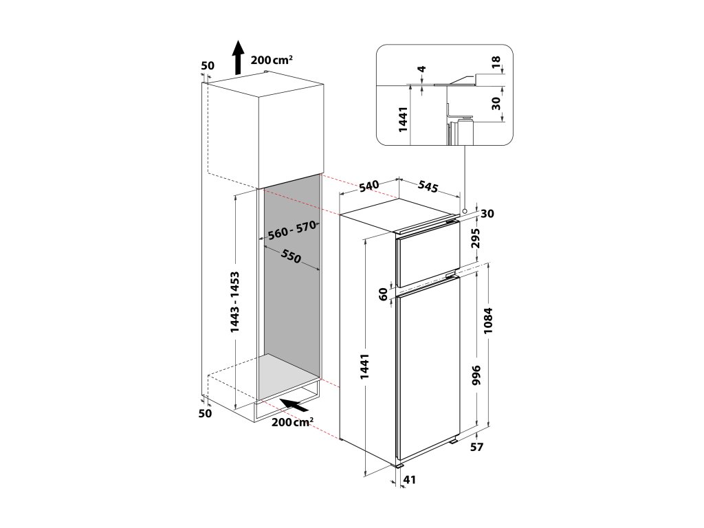 - Beépítési méretek (mag*szél*mély): 1443 mm x 560 mm x 550 mm
