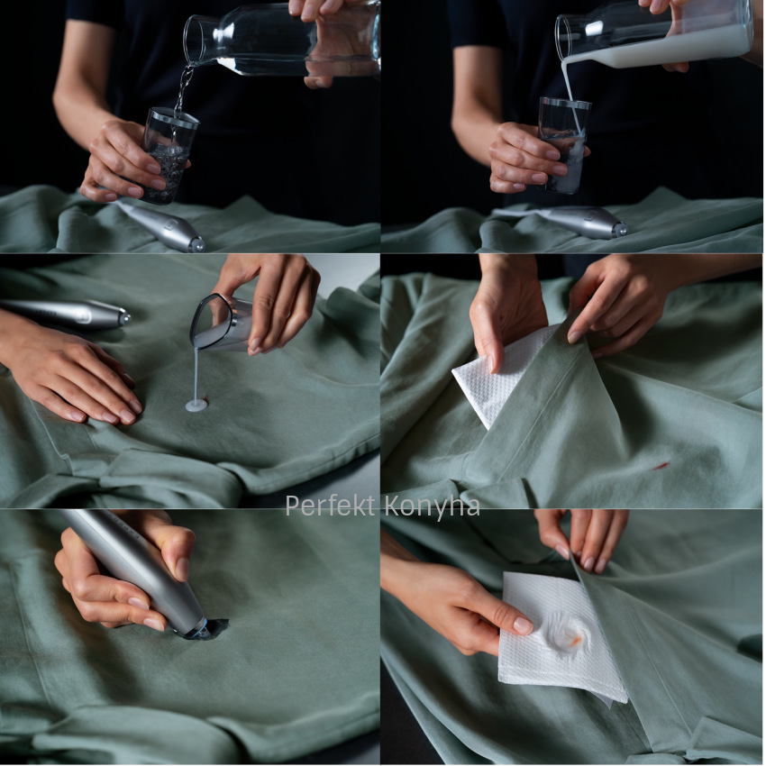 • Itassa át a szövetet a szennyeződés helyén a mosószerrel kevert vízzel.