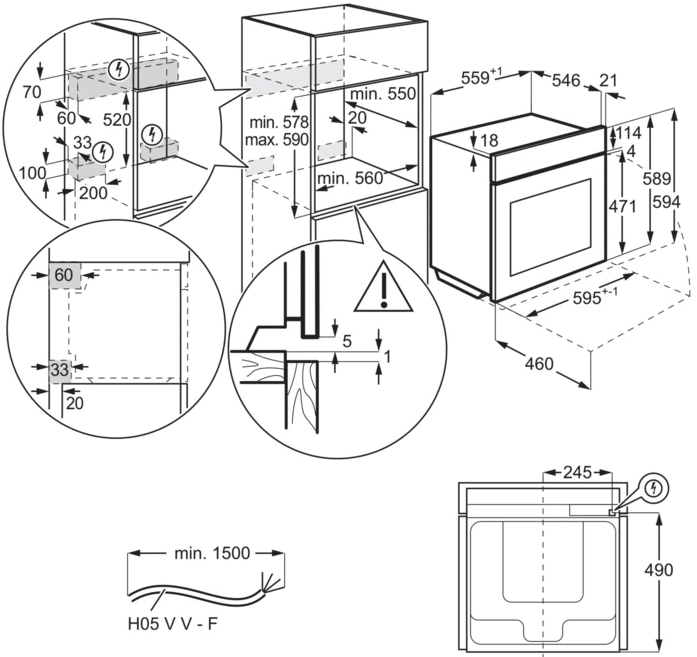Sütőajtó: 1 vízszintes osztás, 4 üveges