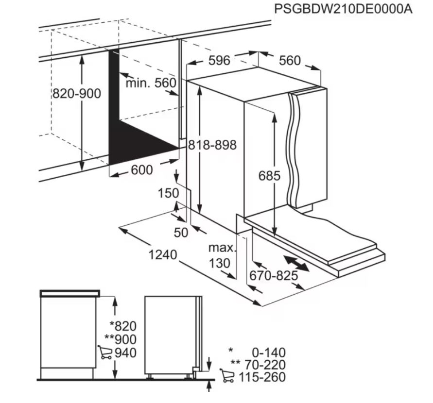 Beépítési méretek (MaxSzéxMé): 820-900x600x560 mm