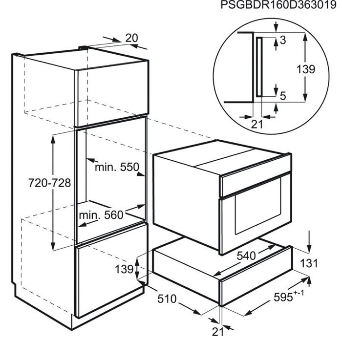 Beépítési méretek (magasság x szélesség x mélység): 141-143 mm X 560 mm X 550 mm