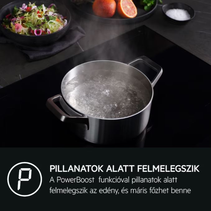A PowerBoost funkcióval azonnali extra hőmennyiség jut a kívánt főzőzónára, hogy az étel pillanatok alatt elkészüljön. Ideális, ha gyorsan szeretne vizet forralni, zöldségeket párolni, vagy akár halat vagy húst sütni.