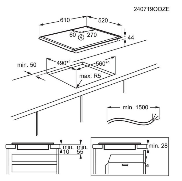 - Beépítési méretek (Mag*Szél*Mély): 44x560x490 mm