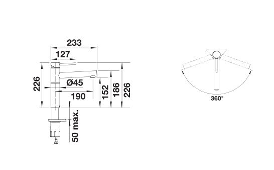 - kibővített használhatósági tér a 360 fokban elforgatható kifolyó révén
