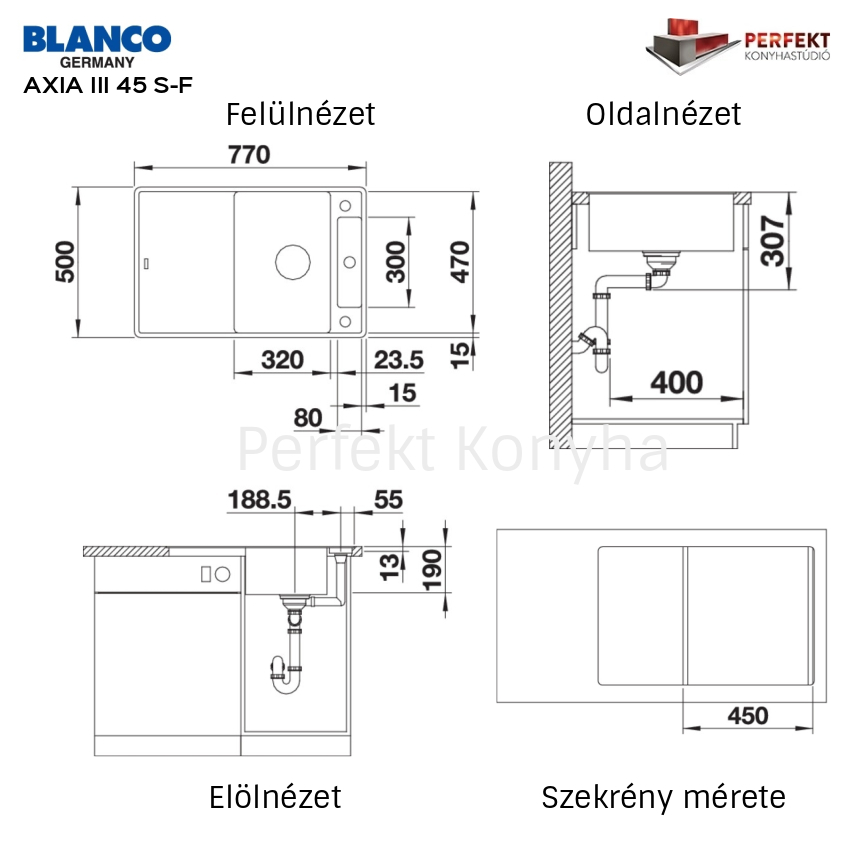Blanco Axia III 45 S-F Silgranit mosogatótálca 5 év gyártói garanciával