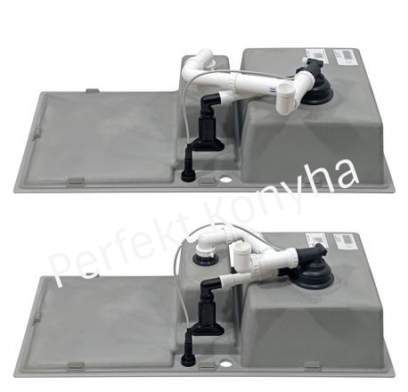 A tetszetős mosogatótálcához a konyhai munka kényelméért válasszon hozzáillő, egymással tökéletesen összehangolt csaptelepet, átüthető csaphely furatba illeszthető mosogatószer-adagolót, illetve a rendkívül ötletes hulladéktároló rendszer valamelyikét.