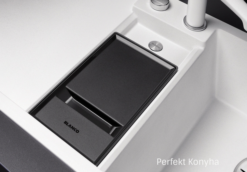 • integrált tároló tál maradékgyűjtéshez: tökéletesen kombinálható a BLANCO SELECT és BLANCO FLEXON II hulladéktárolókkal