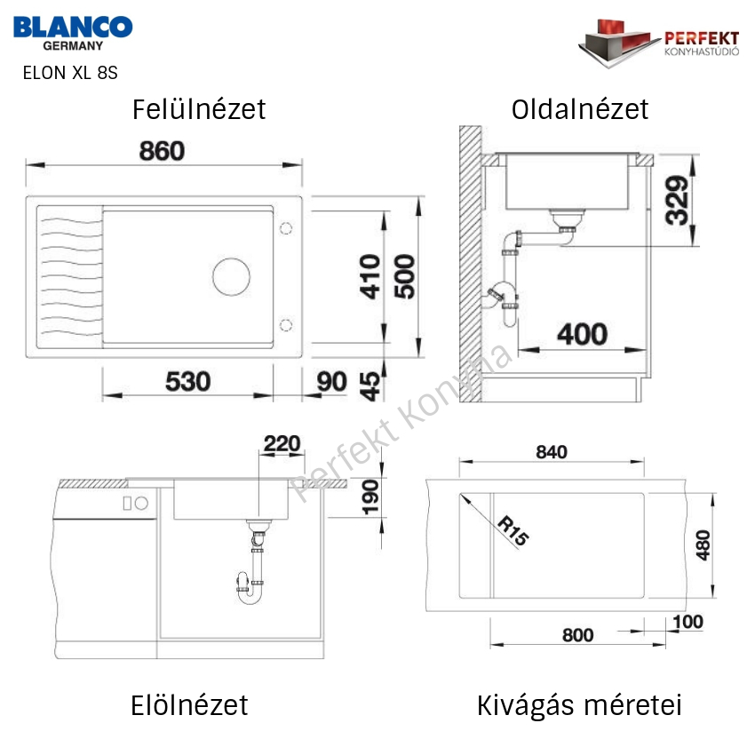 • XL 8S – minimum 80 cm széles alsószekrénybe építhető – elérhető dugókiemelővel is – XL medence