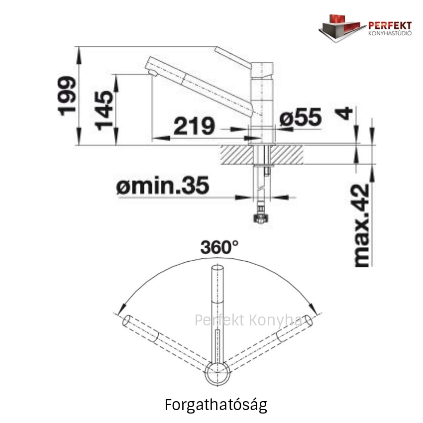 - a csaptelep beépítéséhez 35 mm átmérőjű furat szükséges