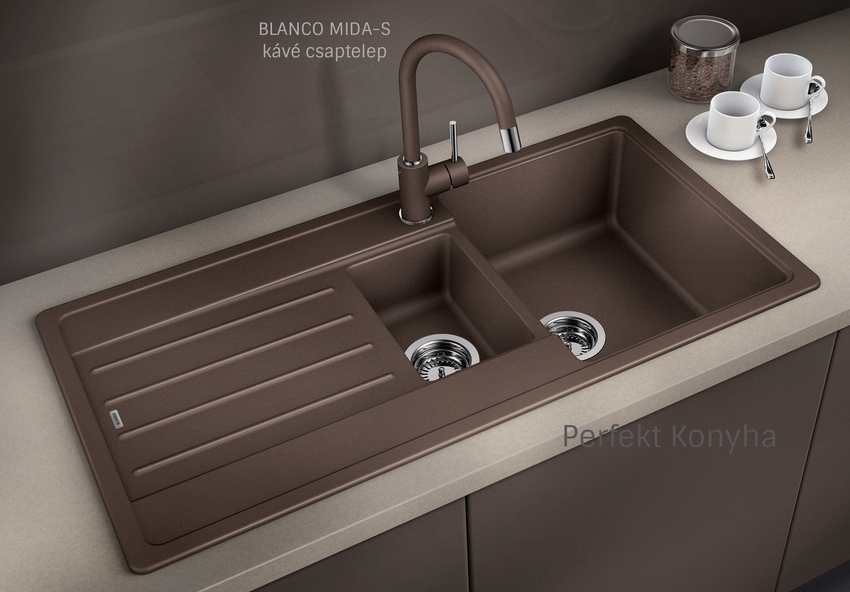 - BLANCO LIVIA – króm, sárgaréz és mangán kivitelben a LIVIA-S csaptelepekkel és mosogatószer-adagolókkal összhangban