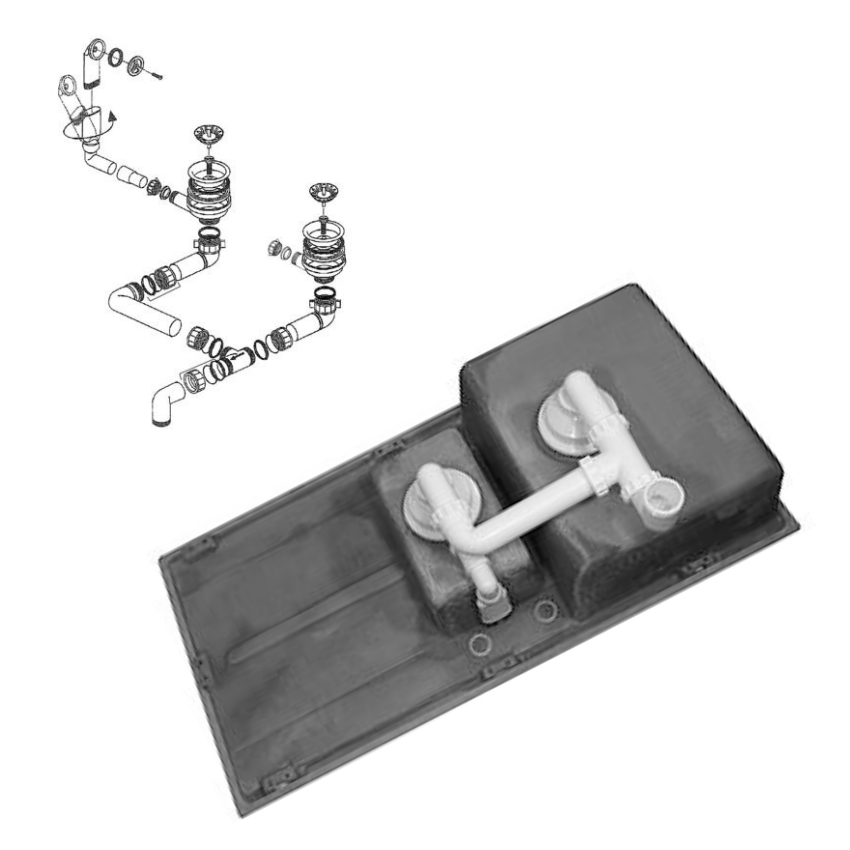 - lefolyó-garnitúra helytakarékos csővel (a bűzzáró szifon nem tartozék)