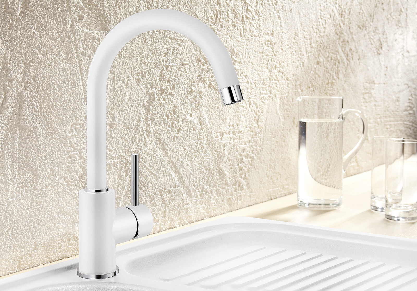 A mosogatók és csaptelepek színe tökéletesen megegyező. A csaptelepek kidolgozása optimálisan passzol minden BLANCO mosogatófelülethez.