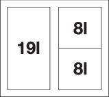 Könnyen tisztítható minden része. A szemetesek űrtatalma : 19 / 8 / 8 liter. A vödrök szélei befelé lejtenek.
