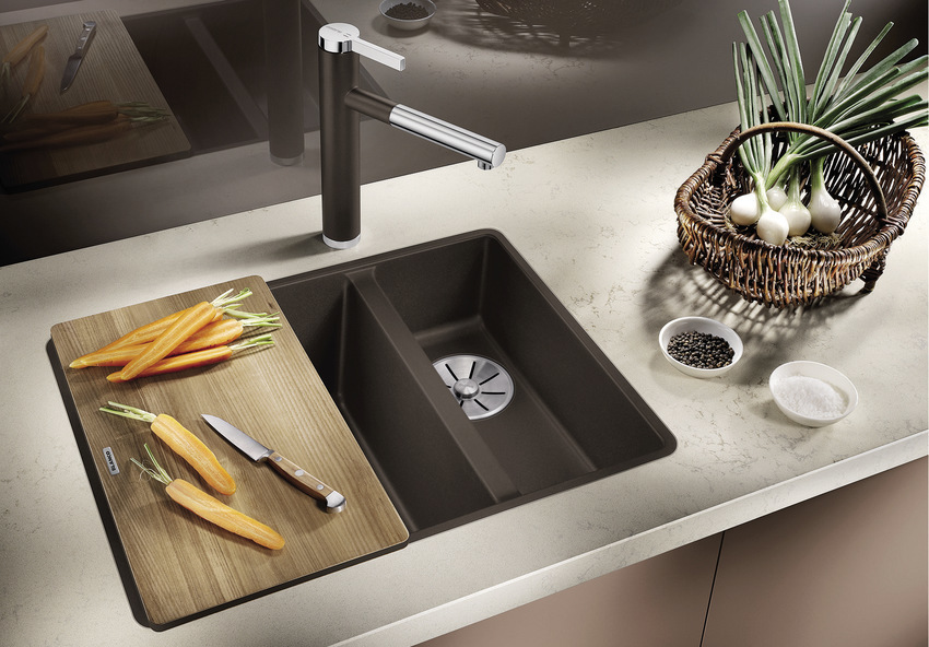 A divatos mosogatócsalád munkalapszintű beépítésre – a BLANCO SUBLINE 340/160-F – egyenes vonalú medenceforma a modern konyhatervezéshez