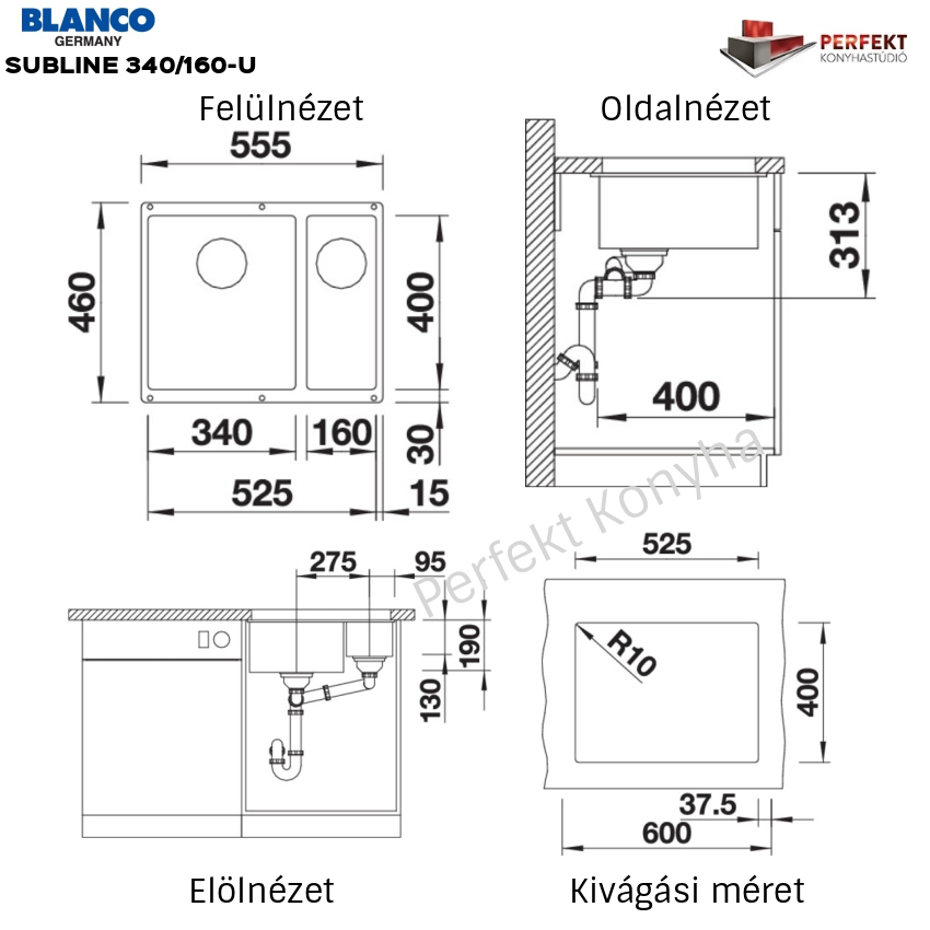 - 340/160-U balos kivitel – elérhető 340/160-F (munkalap szintjébe is építhető) - 6 SILGRANIT színben