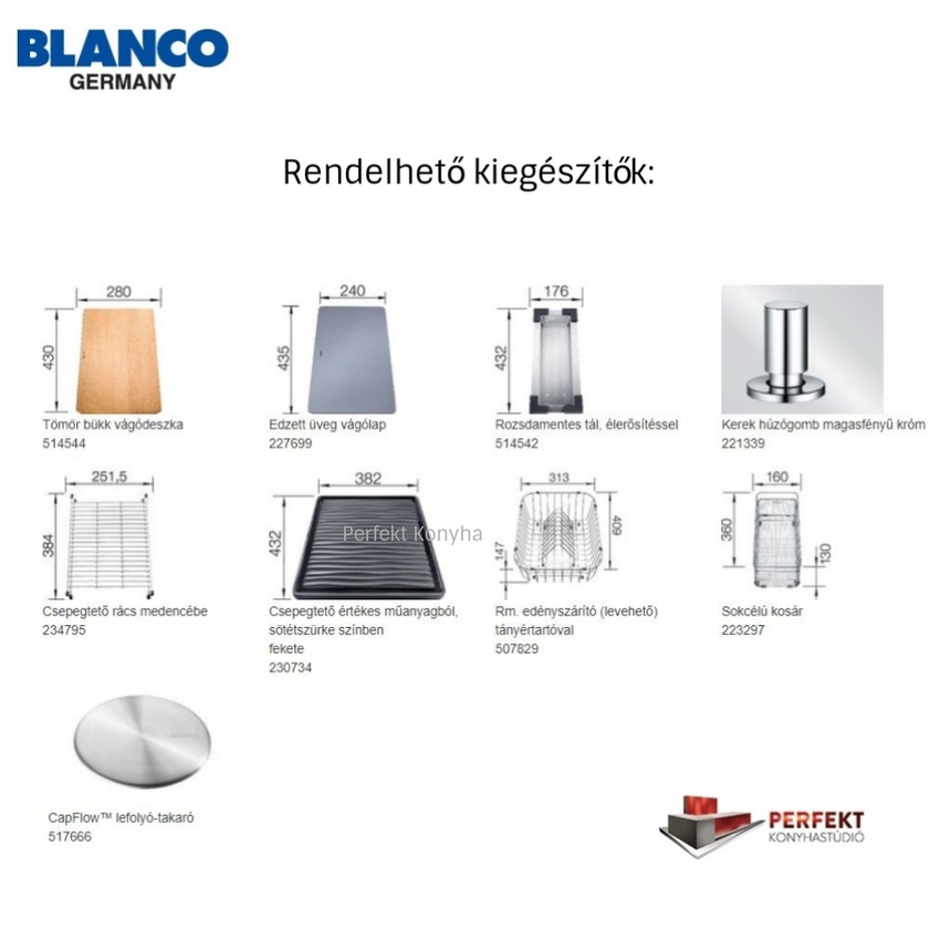 A tetszetős mosogatótálcához a konyhai munka kényelméért válasszon hozzáillő, egymással tökéletesen összehangolt csaptelepet, átüthető csaphely furatba illeszthető mosogatószer-adagolót, illetve a rendkívül ötletes hulladéktároló rendszer valamelyikét.