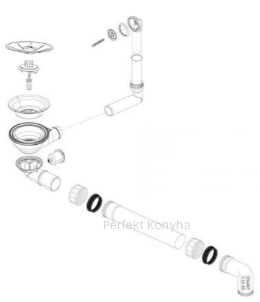 - Bűzzáró szifon 1 1/2" helytakarékos (a helytakarékos csőszifon használatával a mosogatómedence alatti rész jobban kihasználható, így például egy szelektív hulladékgyűjtő könnyedén elhelyezhető) – elérhető a 137287 cikkszámon