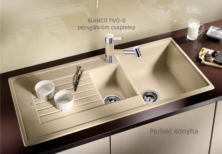 - BLANCO LIVIA – króm, sárgaréz és mangán kivitelben a LIVIA-S csaptelepekkel és mosogatószer-adagolókkal összhangban