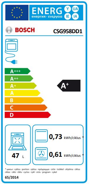 - Energiahatékonysági osztály (EU Nr. 65/2014 szerint): A+ (A+++ és D energiahatékonysági osztály skálán)
