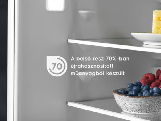 Újraírja a szabályokat – egyedülálló fagyasztó, melynek a belseje 70%-ban újrahasznosított műanyagból készül. A régi visszagyűjtött hűtők műanyag részei új életet kapnak az új termékben, így a körforgás révén csökken a hulladék mennyisége.