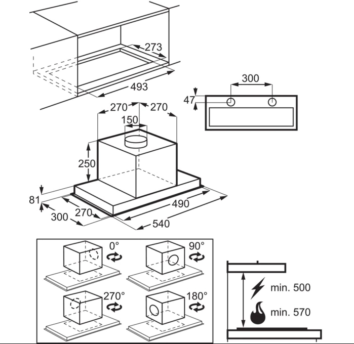 Minimális távolság elektromos főzőlaptól: 50 cm