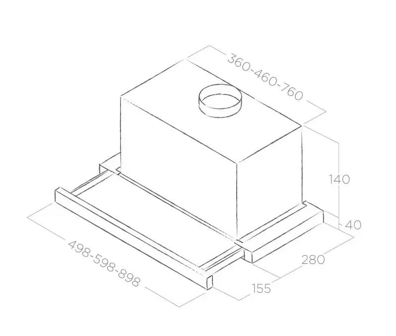 - kivezetett üzemmód esetén Bekötő-szett – ebben az üzemmódban az elszívott levegő – a zsírszűrő filteren áthaladva – egy csőrendszeren keresztül a szabadba vagy erre a célra kialakított légtechnikai kürtőbe kerül. Fontos, hogy ennél a változatnál biztosítsuk a megfelelő friss levegő beáramlását is, mert csak így működnek megfelelő hatékonysággal a készülékek.